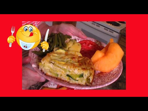 Zucchini and Summer Squash "Cake" Casserole with Fresh Green Beans in th...